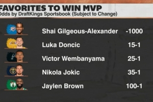 期間,節目組給出了最新的MVP賠率,東契奇已升至第2熱門,但與第1的亞歷山大仍有巨大差距。