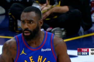 GIF-哈達威右側弧頂三分再中 掘金反超3分