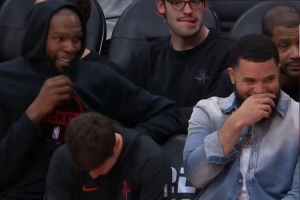 GIF-終場前大比分領先KD和范弗里特、小謝有說有笑