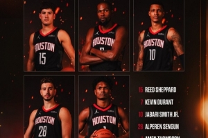 火箭今日首發球員中,杜蘭特25分3板6助2斷2帽、史密斯23分9板2助2斷、申京15分9板10助2斷、阿門14分7板4助、謝潑德14分4板4助2帽。
