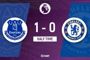 上半場傷停補(bǔ)時2分鐘,半場結(jié)束,切爾西暫0-1埃弗頓。