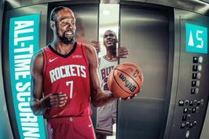 本場比賽截至發(fā)稿,杜蘭特已經(jīng)砍下27分,他的生涯總得分就此超越喬丹,升至NBA歷史第五位!