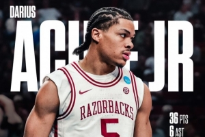 體育資訊3月22日訊 NCAA瘋三32強賽,阿肯色大學94-88險勝海波特大學,晉級甜蜜16強。