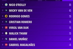 本賽季英超后衛(wèi)球員進(jìn)球榜:奧賴?yán)?球居首,范德芬6球次席