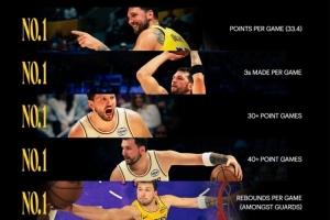 體育資訊3月25日訊 今天,湖人官方曬出了東契奇的幾項數據記錄,并寫道:“數據不會說謊。”詳情如下: