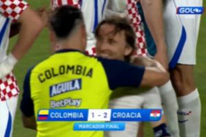 比賽結束后,J羅和莫德里奇交換球衣并聊了許久。兩人此前曾在皇馬共事。