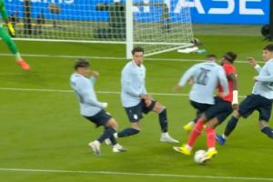 希望無大礙!馬杜埃凱被烏拉圭球員撞倒,隨后被換下