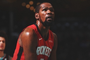 賽后火箭官方發布贏球海報,杜蘭特成為封面人物。