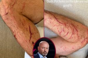 55歲希勒騎自行車時(shí)受傷:手臂、腿部多處割傷和擦傷