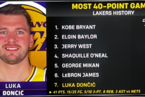據(jù)統(tǒng)計(jì),這是東契奇湖人生涯第17次單場(chǎng)40+,湖人隊(duì)史第七多,差一場(chǎng)追平詹姆斯,詳情如下: