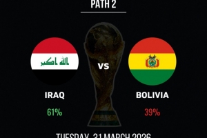 世預賽洲際附加賽:伊拉克晉級概率61%,玻利維亞39%