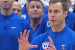 比賽最后時刻,杜克領先2分并握有球權后場底線發球。他在球隊發出球后指揮球員向前場推進導致最后被搶斷三分絕殺。