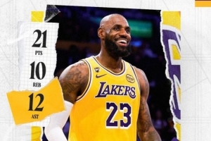 賽后,湖人官方發布詹姆斯三雙數據海報。