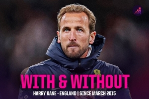 體育資訊4月1日訊 英格蘭在友誼賽中0-1不敵日本,凱恩缺席此役,Opta統計了凱恩在場、缺席情況下英格蘭隊的戰績。