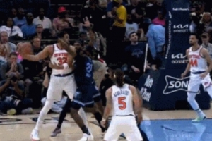 GIF-唐斯遭遇包夾 腦后傳球助攻沙梅特上籃命中