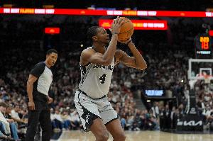 上半場比賽,馬刺后衛福克斯攻防兩端打得高效且輕松,場上作用顯著,他出戰12分鐘,5中4,三分1中1拿到9分3籃板1助攻2搶斷,正負值+30!