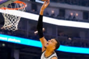 巴恩斯第四節的扣籃,勇士其他人都在擋文班。