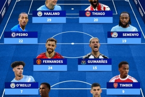 中場:若昂·佩德羅(切爾西,22球)、B費(曼聯,24球)、吉馬良斯(紐卡,15球)、塞梅尼奧(伯恩茅斯/曼城,19球)