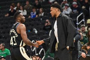 本場比賽,雄鹿球員字母弟弟和字母哥哥在最后時刻獲得出場機會,其中字母弟弟出戰4分27秒,投籃2中0均來自外線,罰球2中1,拿到1分1籃板的數據;字母哥哥出戰5分12秒,投籃1中0來自外線,沒有得分入賬,拿到1籃板1搶斷的數據。