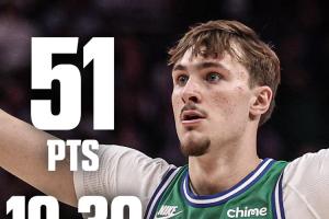 獨(dú)行俠狀元弗拉格打出生涯代表作,他全場(chǎng)出戰(zhàn)33分33秒,30投19中(三分9中6)、罰球7中7,狂砍51分6籃板3助攻3搶斷1蓋帽,只有1次失誤,正負(fù)值-2。