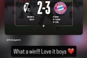 體育資訊4月5日訊 拜仁在本輪德甲讓二追三,逆轉絕殺弗賴堡。因傷缺陣的凱恩也在賽后通過社媒慶祝勝利。