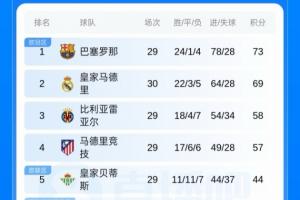 體育資訊4月5日訊 今日西甲,皇馬客場1-2爆冷不敵保級球隊馬略卡,最新積分榜如圖,北京時間凌晨三點巴薩將客戰馬競。