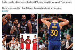 美媒談杜蘭特和庫里:自從庫里以及勇士隊搭檔之后,杜蘭特再也沒能重返分區決賽。在那之后,他身邊也搭檔過多位球星隊友,卻始終沒能成功打進分區決賽:歐文、哈登、本·西蒙斯、德文·布克、克里斯·保羅,如今還有申京和阿門·湯普森。毫無疑問,30 號(庫里)才是那支球隊真正的領袖。