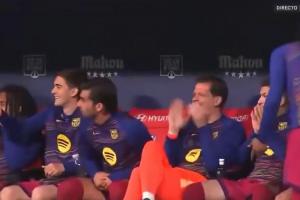 轉(zhuǎn)播方Movistar+的鏡頭捕捉到,當(dāng)巴薩替補(bǔ)席看到岡薩雷斯這樣的舉動(dòng)后都大笑起來(lái),加維向眾人模仿了他的動(dòng)作,替補(bǔ)門將什琴斯尼更是翹著二郎腿看球,鼓掌大笑。