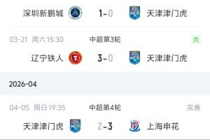 體育資訊04月05日訊 中超第4輪,天津津門虎主場2-3被上海申花逆轉(zhuǎn),雖然球隊(duì)取得了賽季進(jìn)球0的突破,但是仍1平3負(fù)積-9分中超墊底。