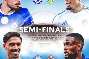 足總杯半決賽將于英國當(dāng)?shù)貢r(shí)間4月25日和26日在中立場溫布利球場舉行,采用單回合制,90分鐘內(nèi)打平則進(jìn)行30分鐘加時(shí)賽(上下半場各15分鐘),若仍未分勝負(fù)則通過點(diǎn)球大戰(zhàn)決出勝負(fù)。