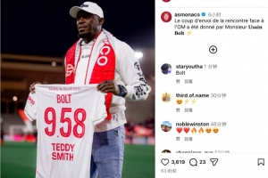 摩納哥官方ins寫道:“歡迎博爾特先生來到現(xiàn)場,為球隊(duì)與馬賽的比賽開球。”