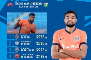 中超第4輪跑動榜:海牛外援埃朱馬連續(xù)登頂,阿利米3米之差隨后