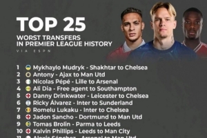 體育資訊4月7日訊 ESPN評選出了英超歷史最糟糕的25筆轉會,穆德里克加盟切爾西居首,安東尼加盟曼聯次之。