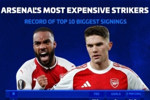 阿森納隊史前鋒最貴引援排名(每球花費,僅統(tǒng)計擔任中鋒或二前鋒比賽):