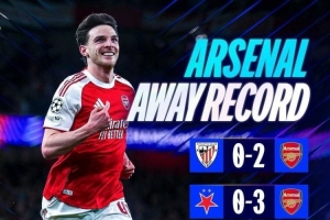 數據統計顯示,阿森納本賽季歐冠客場4勝1平,打進12球僅丟2球:
