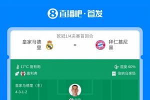 體育資訊04月08日訊 歐冠1/4決賽首回合,皇家馬德里主場迎戰拜仁慕尼黑,賽前雙方首發公布。
