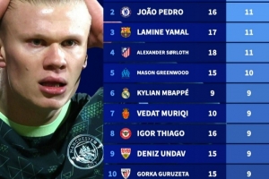 體育資訊3月12日訊 德轉盤點了在2026年五大聯賽球員在聯賽+杯賽進球榜,其中凱恩15球居首,而哈蘭德僅打進4球只位列第114位。具體如下: