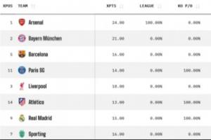 體育資訊04月08日訊 歐冠1/4決賽首回合結(jié)束了兩場(chǎng)較量,皇馬主場(chǎng)1-2不敵拜仁,阿森納客場(chǎng)1-0戰(zhàn)勝葡體。Opta超算更新了最新的歐冠奪冠概率。