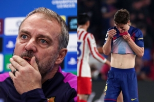 巴薩主帥弗里克接受媒體的采訪時說道:“加維哭了?他已經拼盡全力。他在下半場的表現非常出色。”
