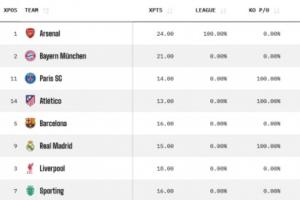 體育資訊04月09日訊 歐冠1/4決賽首回合較量全部結束,巴薩0-2馬競,巴黎2-0利物浦,皇馬1-2拜仁,葡體0-1阿森納。Opta超算更新了最新的歐冠奪冠概率。