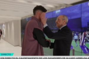 在與巴爾韋德握手時,弗洛倫蒂諾輕輕給了巴爾韋德一巴掌,而在碰到貝林厄姆時則與其交流了幾句。