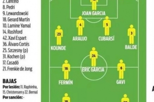 體育資訊4月11日訊 北京時間周日凌晨的西甲第31輪比賽,巴薩將在諾坎普迎戰德比隊史西班牙人。本場比賽之前,《每日體育報》對巴薩首發陣容進行了預測。由于下周中還有對陣馬競的歐冠1/4決賽次回合比賽,弗里克預計會大幅輪換,巴德吉、奧爾莫和費蘭·托雷斯組成三叉戟,巴德吉、加維、庫巴西出戰。