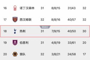 跌入降級區(qū)!熱刺反超西漢姆成為最新降級熱門,降級概率達(dá)39%