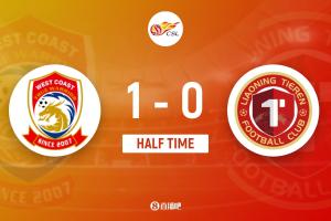 半場結(jié)束,青島西海岸暫1-0遼寧鐵人。