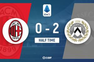 上半場比賽結束,AC米蘭0-2烏迪內斯。