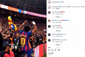 亞馬爾也在賽后通過社媒曬出自己在諾坎普坐廣告牌的霸氣慶祝照,并配文:“巴塞羅那是紅藍色的????!!和往常一樣,是時候接受現實了。”
