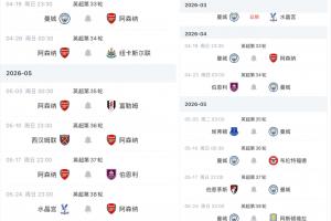 曼城少賽1場距榜首阿森納6分,兩隊還有一場天王山之戰(zhàn)下輪打響。兩隊賽程對比如上圖。