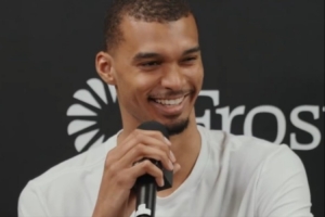 本賽季,文班攻防兩端表現高效且極具統治力,他出戰64場,場均可以得到25分11.5籃板3.1助攻1搶斷。他場均可以送出3.1記蓋帽,榮膺本賽季聯盟蓋帽王(季中錦標賽決賽不算常規賽出場次數,但計入65場評獎資格)。