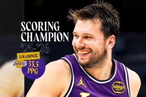 據湖人官方統計,在過去的三個賽季中,東契奇第二次榮獲得分王。他是NBA歷史上第20位多次獲得得分王的球員。他也是湖人隊史第五位獲此殊榮的球員,上一位是科比(2006-07賽季)。