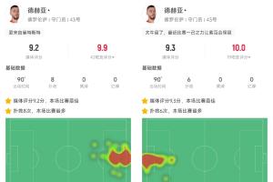 最近兩場比賽,德赫亞先后做出8次撲救和6次撲救,獲得9.2、9.3的評分,幫助佛羅倫薩兩場1-0戰勝維羅納、拉齊奧,目前佛羅倫薩排名意甲第15,還剩6輪已經領先降級區8分,保級形勢一片大好。